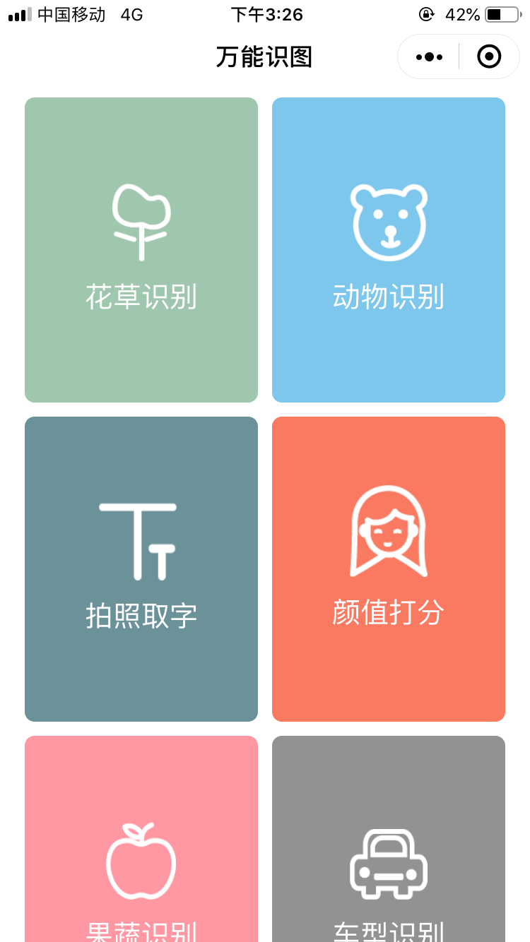 一款拍照识图小程序,帮您拍照识别植物、识别动物、识别车型、识别文字等。