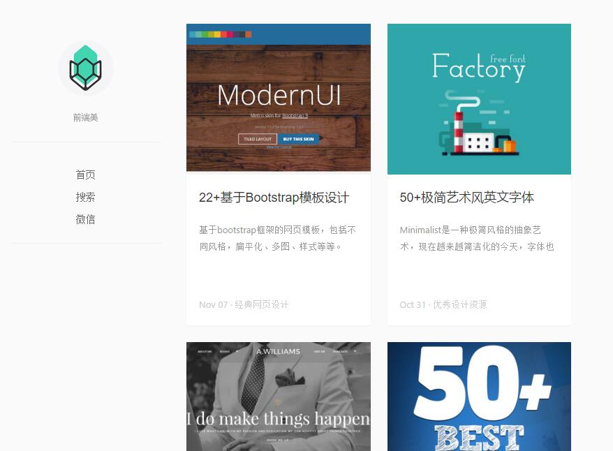 前端美是一由前端妹纸创建的博客网站,专注国内外前端设计资讯,前端资源下载,前端开发教程,国内前端行业最好博客站点,帮助前端设计师们找到设计灵感和可参考的案例。