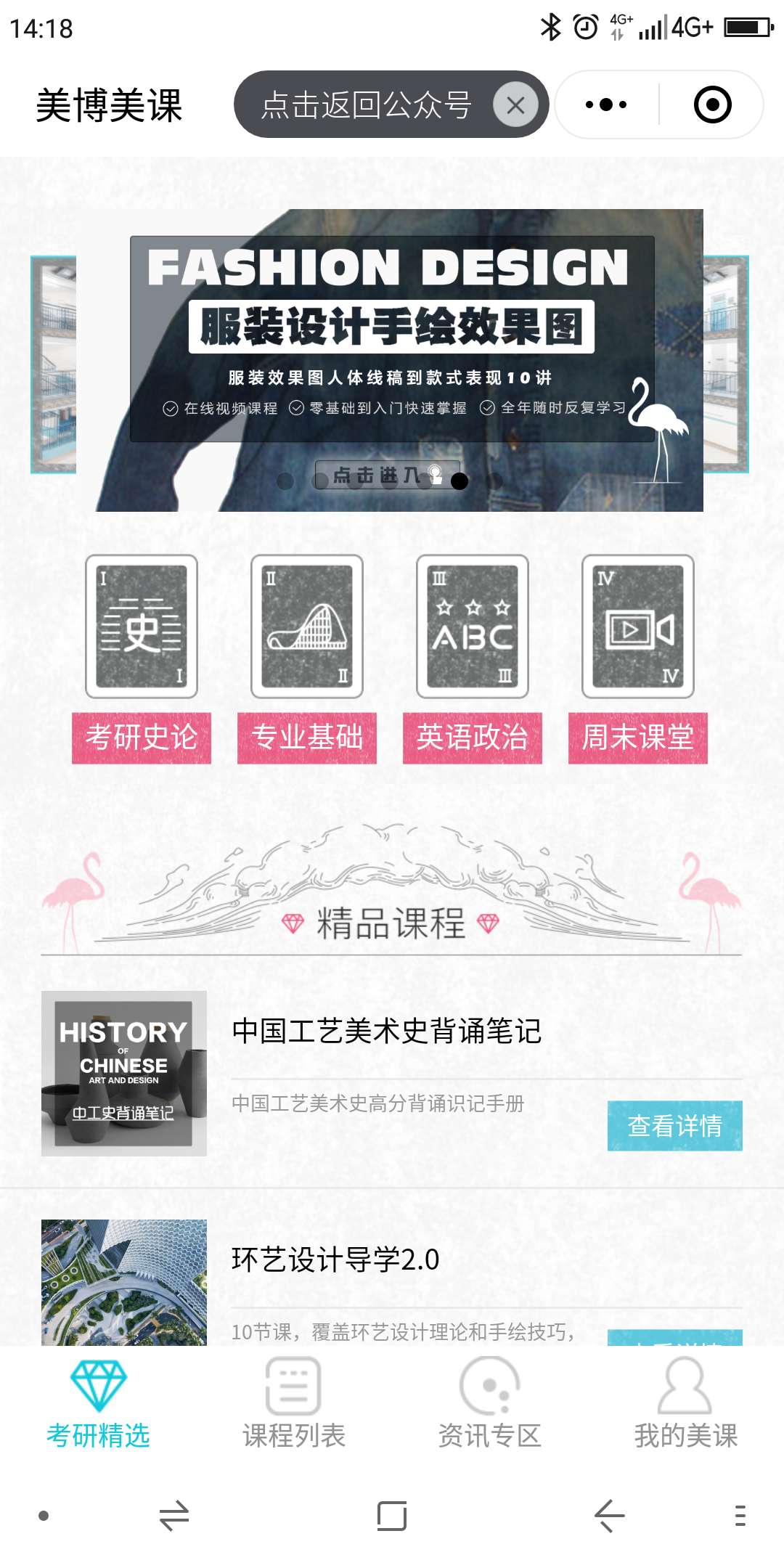 美博美课(Cucn.Net)是北京美博惠人国际教育科技有限公司旗下艺术设计考研在线视频网课小程序平台,美博美课微信小程序于2017年底上线,软件结合美博思远十余年艺术考研教育的经验,为艺术设计考研学子提供低成本、高效率的学习方式,主旨在于提升中国艺术设计水平及高等艺术教育的普及,让全国艺术设计类考生均可以享受北京的教育资源及教育形式。