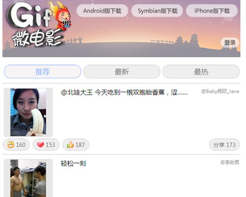 Gif微电影是一款简单好玩的GIF拍摄、制作、ps及分享到新浪微博、腾讯微博、QQ空间、人人网、开心网、嘀咕网等社区的手机小应用。...