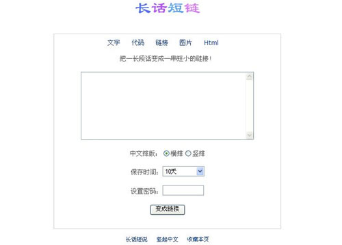 长话短链是一个通过链接分享文字、图片、代码、链接、Html的在线服务,也就是你可以将各类文字、代码或者图片转换成一个链接来进行分享,同时你也可以给分享的链接设置密码,可以直接将分享内容同步到微博。...